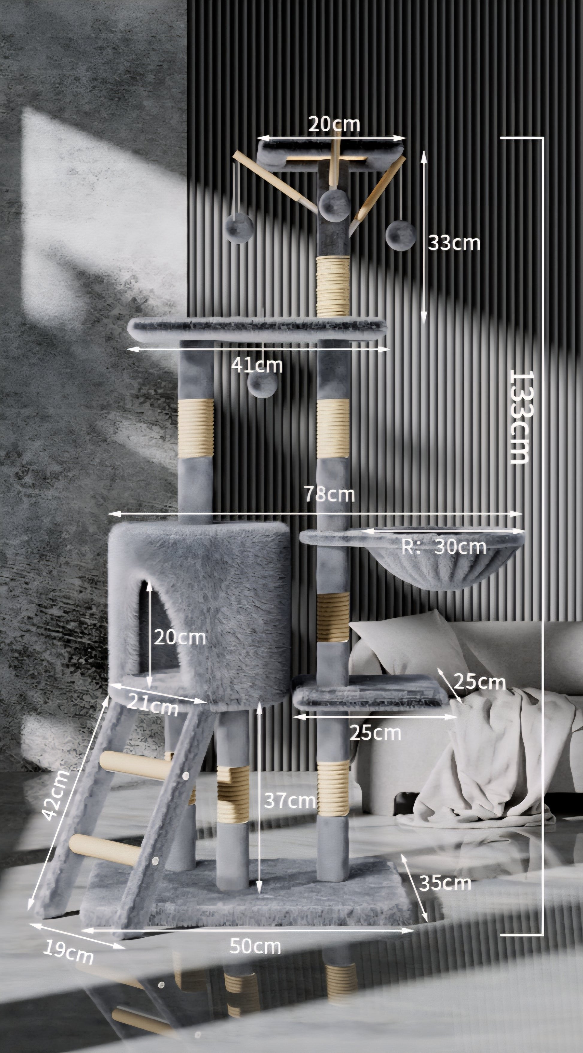 133 CM Multi-level Cat Tree with Scratching Posts and Condo